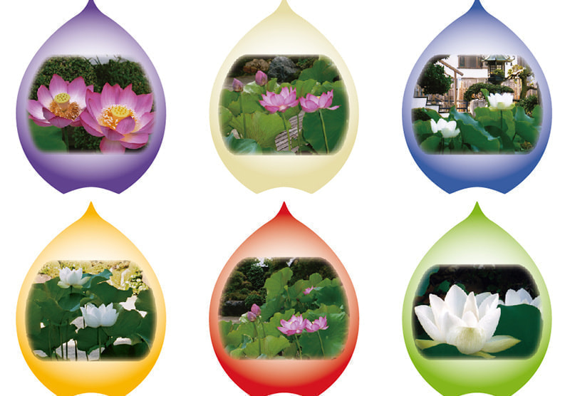 ご自身で撮影さてた境内の蓮の写真をお預かりして散華へとレイアウトいたしました。散華裏面は蓮の華のように細い線を入れイメージアップをご依頼いただきました。