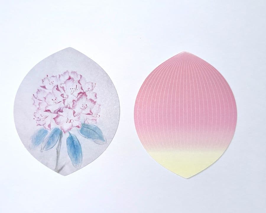 ご自身が描かれた石楠花の絵を表にあしらい、裏面はピンクの蓮の花弁をイメージする色合いで仕上げました。